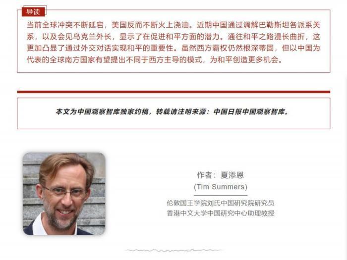 中國(guó)近期的外交努力得到了世界多地的廣泛支持。持續(xù)的沖突表明西方霸權(quán)仍然根深蒂固,幸而全球南方的崛起為逐步消除和平面臨的障礙帶來(lái)了希望。