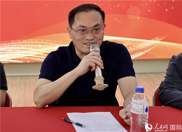 巴西中國(guó)浙江商會(huì)會(huì)長(zhǎng)鄭俠茂在座談會(huì)上致辭。人民網(wǎng)記者 宋亦然攝