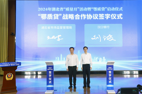 儀式上,湖北省市場(chǎng)監(jiān)督管理局黨組書(shū)記、局長(zhǎng)王世榮宣布2024年湖北省質(zhì)量月活動(dòng)暨“鄂質(zhì)貸”正式啟動(dòng),湖北省市場(chǎng)監(jiān)督管理局黨組成員、副局長(zhǎng)王勤發(fā)布《2023湖北質(zhì)量報(bào)告》白皮書(shū)(以下簡(jiǎn)稱(chēng)“白皮書(shū)”),省市場(chǎng)監(jiān)管局與漢口銀行簽訂了“鄂質(zhì)貸”戰(zhàn)略合作協(xié)議。