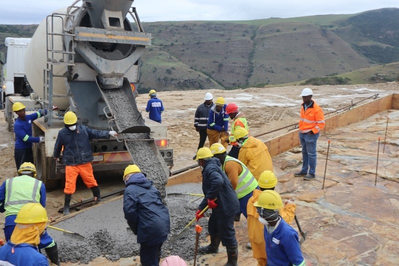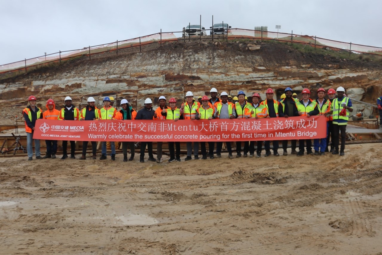 南非門塔圖大橋項(xiàng)目首方混凝土澆筑現(xiàn)場。中國交建南非公司供圖