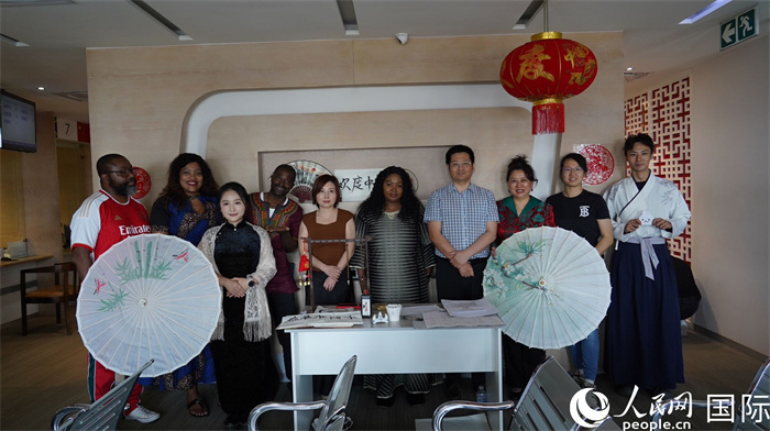 孔子課堂教師與簽證中心工作人員合影。人民網(wǎng) 劉暢攝
