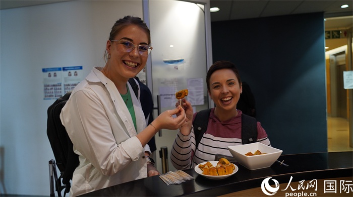 遞簽來賓品嘗簽證中心提供的美味中秋月餅。人民網(wǎng) 劉暢攝