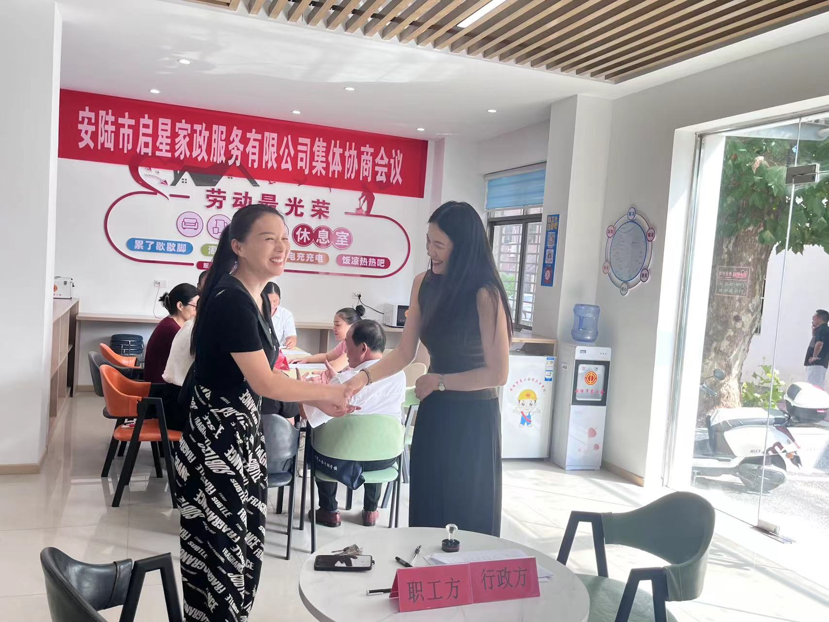 此次協(xié)商活動(dòng)中,安陸市人社局充分發(fā)揮橋梁紐帶作用,組織勞企雙方面對(duì)面交流,圍繞女職工薪資、帶薪休假、員工保險(xiǎn)等議題,共同探討合理的工資標(biāo)準(zhǔn)和支付方式。最終雙方達(dá)成一系列共識(shí),建立家政服務(wù)人員工資增長(zhǎng)機(jī)制、規(guī)范工資支付時(shí)間等措施。