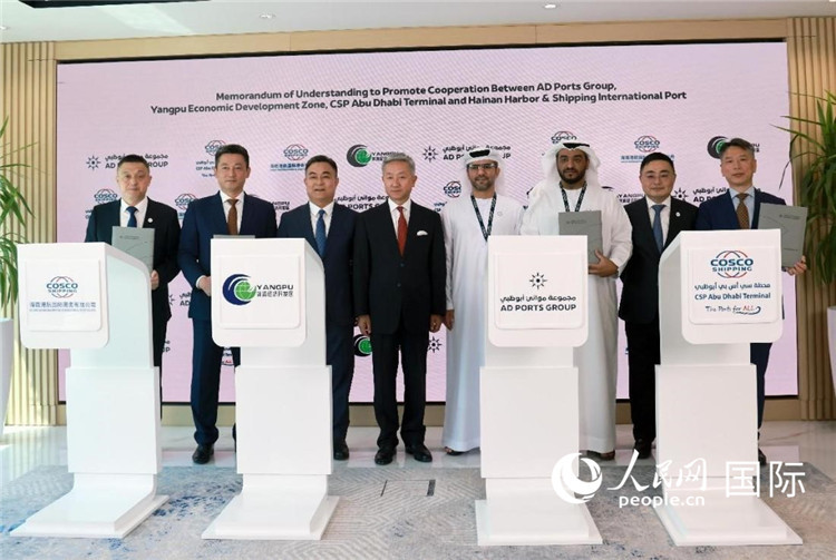 據(jù)介紹,阿布扎比港和洋浦港是中遠(yuǎn)海運集團在亞太區(qū)域最重要的樞紐港,兩個港口推動“投資、建設(shè)、運營”一體化發(fā)展,不僅建成了現(xiàn)代化的港口,還布局了先進的綜合物流園區(qū)。阿布扎比哈里發(fā)二期集裝箱碼頭五年前從零起步,2023年實現(xiàn)吞吐量135萬標(biāo)準(zhǔn)箱,并成為中東地區(qū)首個智慧碼頭,助力阿布扎比港全球影響力持續(xù)提升。洋浦港已連通包括東南亞主要港口和西非、北澳、南美的47條內(nèi)外貿(mào)航線,基本形成以洋浦為中心的區(qū)域國際集裝箱中轉(zhuǎn)航線網(wǎng)絡(luò),2023年碼頭吞吐量超過160萬標(biāo)準(zhǔn)箱,擴建后港口能力將提升到500萬標(biāo)準(zhǔn)箱。今年4月,“洋浦—阿布扎比”直達(dá)航線成功開通,構(gòu)建起以姊妹港為核心的互聯(lián)互通網(wǎng)絡(luò)。