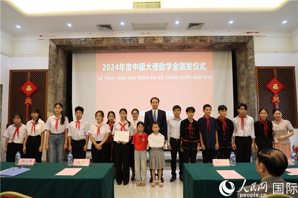 人民網(wǎng)河內(nèi)9月28日電 (記者楊曄)9月26日,中國駐越南使館舉行2024年度中國大使助學(xué)金頒發(fā)儀式。中國駐越南大使何煒、越南友聯(lián)、越中友協(xié)負(fù)責(zé)人、河內(nèi)市、太原省、廣寧省、諒山省和北江省等地獲資助師生代表逾100人出席。