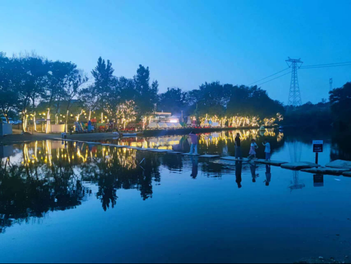 夜晚降臨,一頂頂帳篷成為一道道靚麗的風景。來自武漢的胡女士一行6人慕名到此露營,她說:“這里柳樹成林,河水清澈,白天可以劃船、吃燒烤,晚上還有煙花節(jié),長江煙花秀錯過了,今晚打算對著煙花給家人許個愿。”