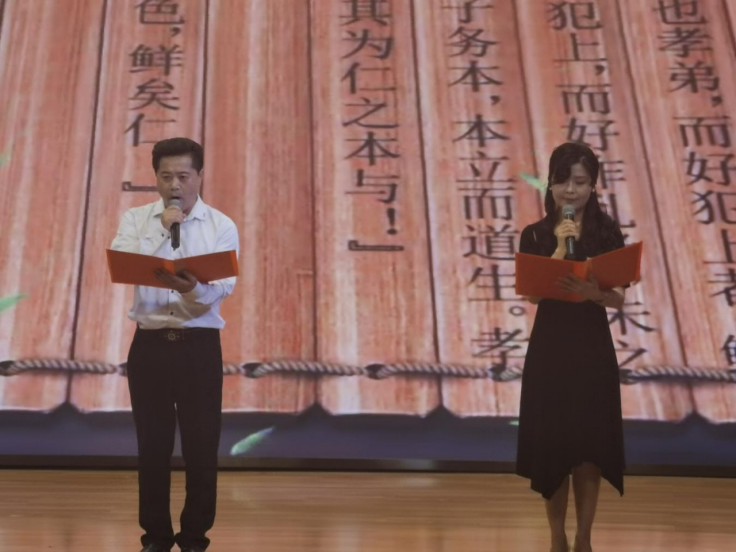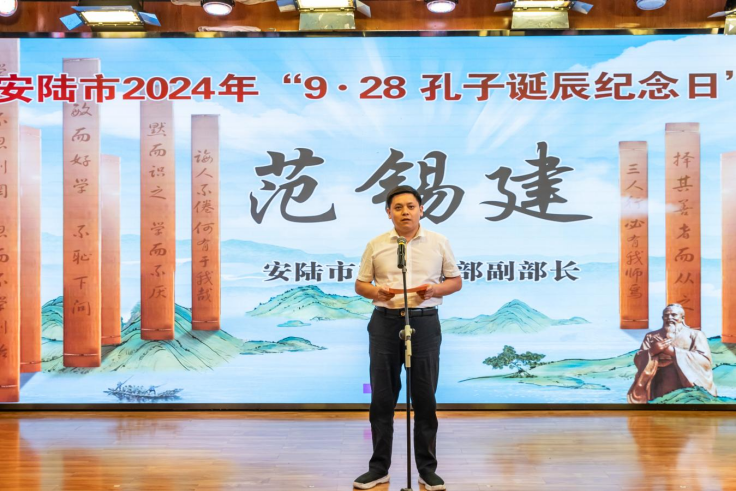活動(dòng)在莊嚴(yán)而熱烈的氛圍中拉開(kāi)序幕,市委宣傳部副部長(zhǎng)范錫建首先發(fā)表致辭。致辭結(jié)束后,一系列豐富多彩的文藝節(jié)目輪番上演,令人目不暇接。女聲獨(dú)唱《芝蘭》、舞蹈《祭拜曲舞》、詩(shī)朗誦《孔子:智慧之光》、情景劇《傳承》、集體誦讀《對(duì)話論語(yǔ)》等節(jié)目以各自獨(dú)特的藝術(shù)表現(xiàn)形式,頌揚(yáng)了孔子的儒家思想與人格魅力,展現(xiàn)了中華文化的博大精深。