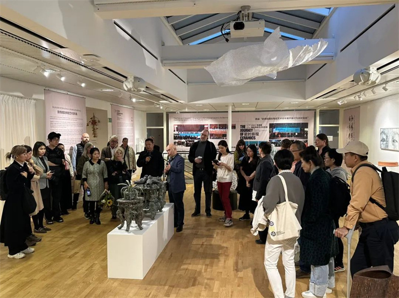 景德鎮(zhèn)陶瓷大學副校長呂品昌教授給觀眾做專場導覽。斯德哥爾摩中國文化中心供圖