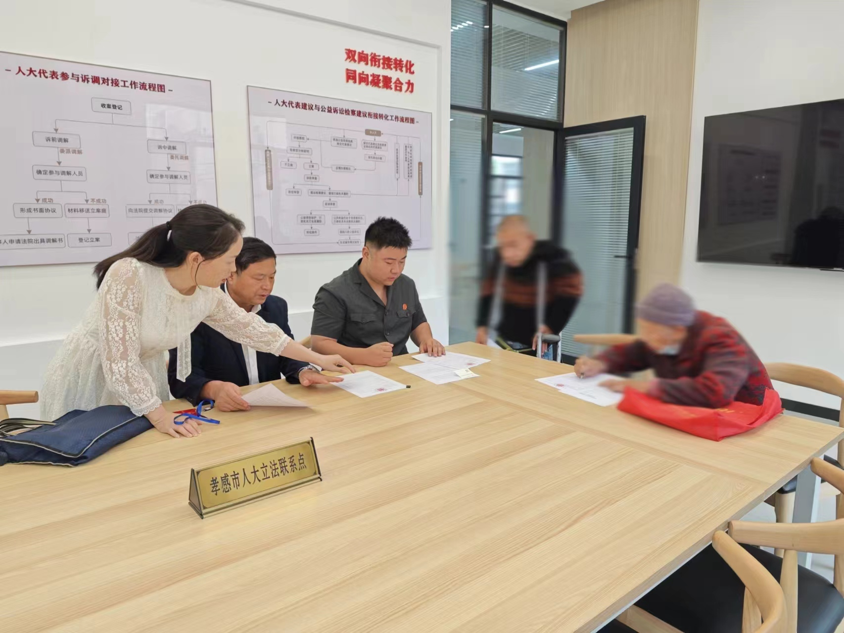 10月10日,在安陸市全過程人民民主實踐基地(府城街道儒學社區(qū))的“法解民憂”工作室,“人大代表+法官+金牌調(diào)解員+律師”聯(lián)合開展公開接待日活動,接待來訪群眾,傾聽民意解民憂,成功調(diào)解一起遺產(chǎn)糾紛。