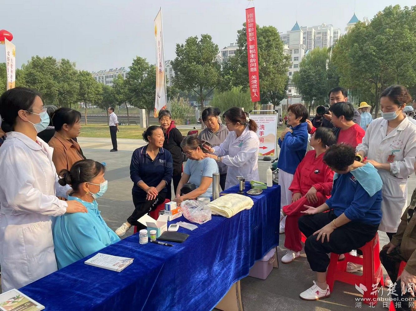 荊楚網(wǎng)(湖北日?qǐng)?bào)網(wǎng))訊(通訊員音卓)在第15個(gè)全國(guó)“敬老月”、第三屆中國(guó)關(guān)工委“孝老敬賢月”以及九九重陽(yáng)節(jié)來(lái)臨之際,10月10日,孝感市中醫(yī)醫(yī)院老年病科、治未病科、腦病科、心病科的醫(yī)護(hù)團(tuán)隊(duì),在孝南區(qū)禁毒主題公園精心組織了一場(chǎng)充滿溫情的義診活動(dòng)。