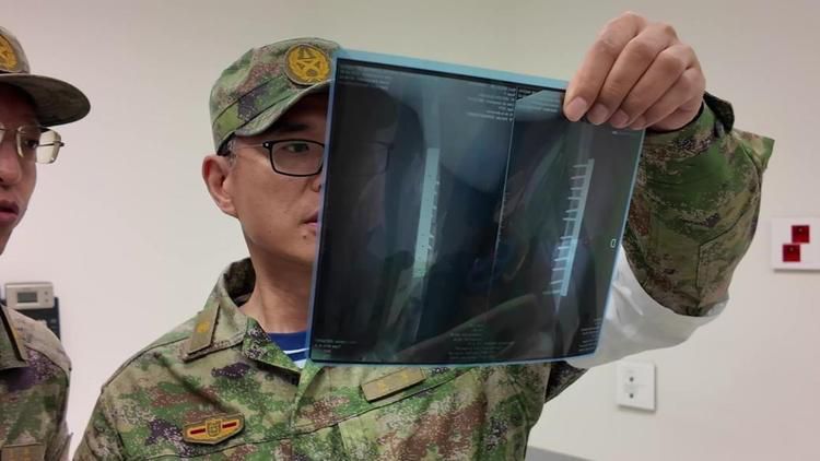 治療完畢后,打上石膏坐在輪椅上的常洪彬原本緊皺的眉頭舒展開來。中國軍醫(yī)的專業(yè)治療讓他懸著的心終于落了下來。