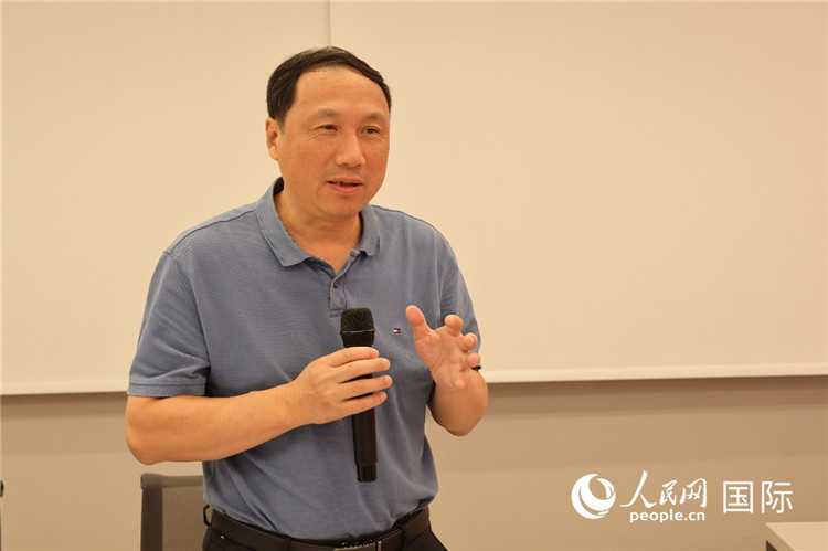 巴西和統(tǒng)會會長張小春在座談會上致辭。人民網(wǎng)記者 陳海琪攝