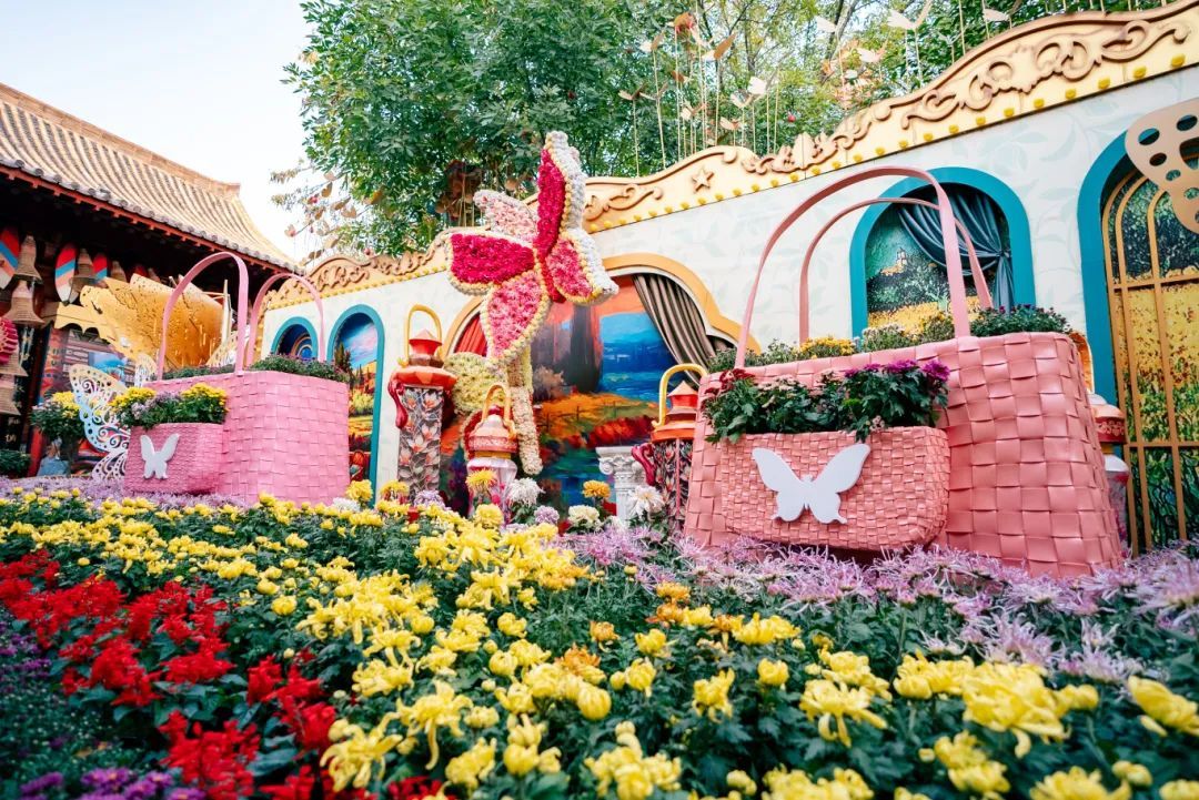 用數(shù)百萬(wàn)株精品菊花,國(guó)潮風(fēng)范的菊花造型,