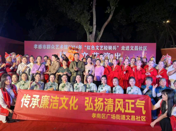 荊楚網(wǎng)(湖北日?qǐng)?bào)網(wǎng))訊(通訊員向晨 楊纓)10月18日晚,孝感市孝南區(qū)廣場(chǎng)街道文昌社區(qū)聯(lián)合孝感市群眾藝術(shù)館,開展“紅色文藝輕騎兵”走進(jìn)文昌社區(qū),傳承廉潔文化,弘揚(yáng)清風(fēng)正氣,惠民文藝演出。