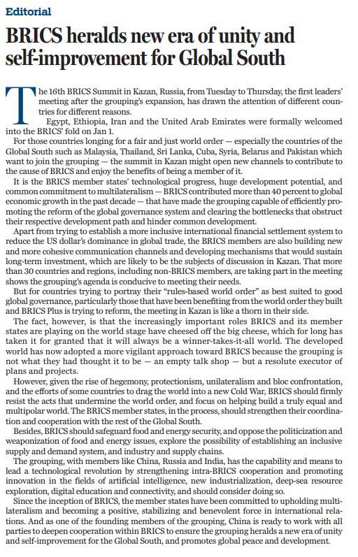原文標題:BRICS heralds new era of unity and self-improvement for Global South
