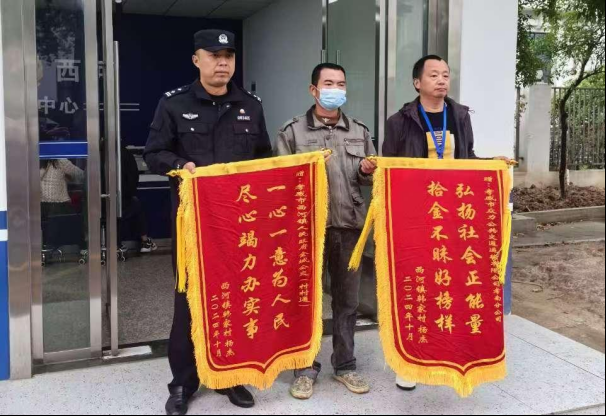 荊楚網(wǎng)(湖北日報(bào)網(wǎng))訊(通訊員 沈祉怡)10月21日,家住西河鎮(zhèn)韓家村的楊先生、程女士將兩面印有“弘揚(yáng)社會(huì)正能量 拾金不昧好榜樣”和“一心一意為人民 盡心竭力辦實(shí)事”的錦旗送到孝南區(qū)西河鎮(zhèn),稱贊了駕駛員潘師傅拾金不昧的高尚品德和西河鎮(zhèn)政府開通交通的便民服務(wù)舉措。