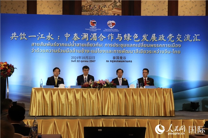 人民網(wǎng)曼谷10月23日電(記者簡承淵、實(shí)習(xí)生姚欣可)22日,“共飲一江水:中泰瀾湄合作與綠色發(fā)展政黨交流匯”在泰國曼谷舉行。中共中央委員、青海省委書記陳剛,中國駐泰國大使韓志強(qiáng),泰國前國會主席、泰中文化經(jīng)濟(jì)協(xié)會會長頗欽,泰國前總理阿披實(shí),為泰黨發(fā)言人阿努蓬等嘉賓出席,來自泰政黨、政府、國會、機(jī)構(gòu)等各界友好人士200余人參會。