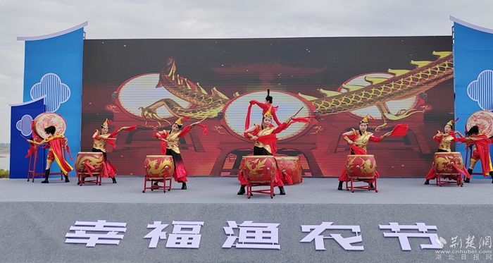 在漁農(nóng)文藝觀賞區(qū),開幕儀式上頒發(fā)了陶店鄉(xiāng)農(nóng)業(yè)發(fā)展顧問和電商發(fā)展顧問的聘書,并舉行了湖北淼燁生態(tài)農(nóng)業(yè)有限公司巴河魚丸項目的簽約儀式。舞臺上,身著統(tǒng)一服裝的表演者們揮舞著鼓槌,敲打著鑼鼓,喜慶的氛圍讓現(xiàn)場觀眾心潮澎湃,掌聲雷動。