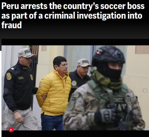 據(jù)報(bào)道,當(dāng)天上午,洛薩諾被銬上手銬押送至其秘魯首都利馬家門外的一輛警車上。他承諾將澄清“誤會(huì)”,并要求公眾保留判斷。此外,秘魯足協(xié)的另外6名相關(guān)人士也被捕。