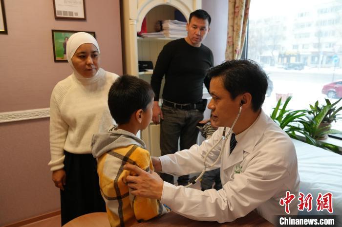 在治療室,中哈傳統(tǒng)醫(yī)學(xué)中心醫(yī)生賀維為一名患有神經(jīng)發(fā)育遲緩疾病的孩子做推拿治療。孩子手里攥著一個(gè)虎形的中藥香囊,時(shí)不時(shí)朝賀維露出笑容?!拔覀兩现荛_始嘗試中醫(yī)針灸和推拿,發(fā)現(xiàn)孩子的反應(yīng)和認(rèn)知有變化。”談及孩子的病情,孩子母親表示,“只要能有改善,我們一定會(huì)堅(jiān)持治療”。