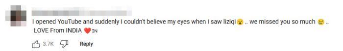 來自印度的網(wǎng)友表示,“當(dāng)我打開YouTube突然看到李子柒的時(shí)候,簡直不敢相信自己的眼睛!我們非常想念你……來自印度的愛?!?/p>