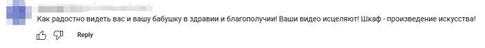 有網(wǎng)友用俄語留言:“看到你和你的祖母身體健康、生活幸福,我太高興了!你的視頻太治愈了!這個(gè)衣柜簡直是一件藝術(shù)品!”