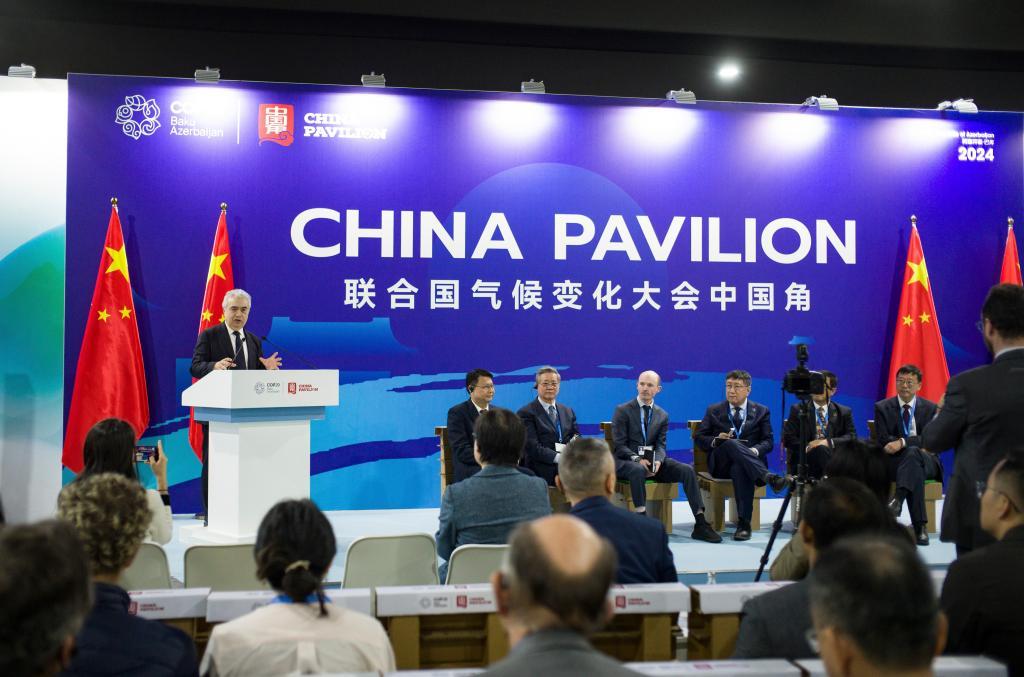 這是11月13日在阿塞拜疆首都巴庫拍攝的聚焦中國能源轉型與新能源發(fā)展的中國角邊會活動現場。新華社記者孟菁攝