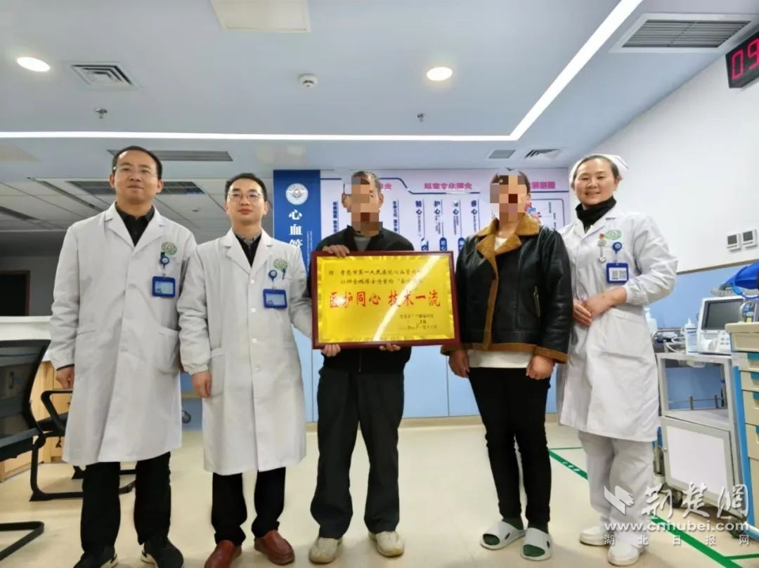 荊楚網(wǎng)(湖北日?qǐng)?bào)網(wǎng))訊(通訊員汪杏子)11月18日,住了一個(gè)多月的徐爹爹順利出院,家屬和患者滿懷感激之情,特地贈(zèng)送一塊寫有“醫(yī)護(hù)同心,技術(shù)一流”的牌匾。這枚牌匾不僅是患者對(duì)孝感市第一人民醫(yī)院心內(nèi)科醫(yī)療團(tuán)隊(duì)工作的高度認(rèn)可,更是鞭策與鼓勵(lì)。