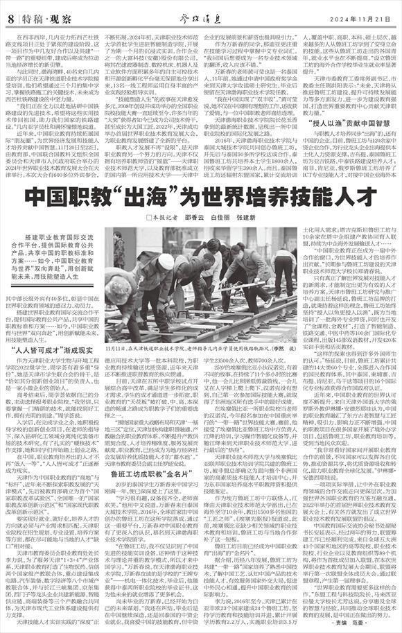 搭建世界職業(yè)教育國(guó)際交流合作平臺(tái),提供國(guó)際教育公共產(chǎn)品,共享中國(guó)的職教標(biāo)準(zhǔn)和方案……如今,中國(guó)職業(yè)教育與世界“雙向奔赴”,用創(chuàng)新賦能未來(lái),用技能塑造人生。