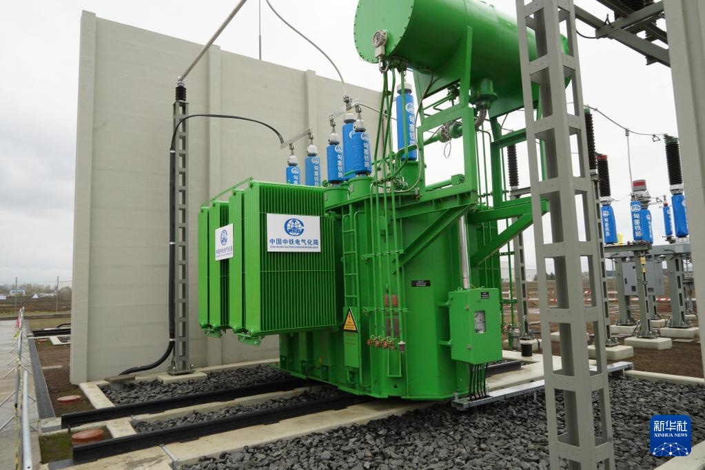 這是11月20日在匈牙利多瑙沃爾沙尼拍攝的匈塞鐵路匈牙利段多瑙沃爾沙尼牽引變電所。 新華社記者 陳浩 攝