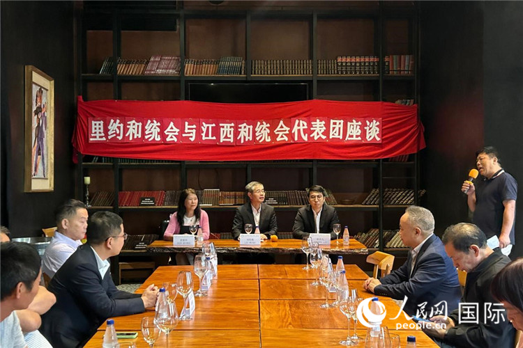 當(dāng)?shù)貢r(shí)間11月23日,正在巴西里約熱內(nèi)盧訪問的江西和統(tǒng)會(huì)代表團(tuán)與里約和統(tǒng)會(huì)舉行座談會(huì)。人民網(wǎng)記者 陳一鳴攝