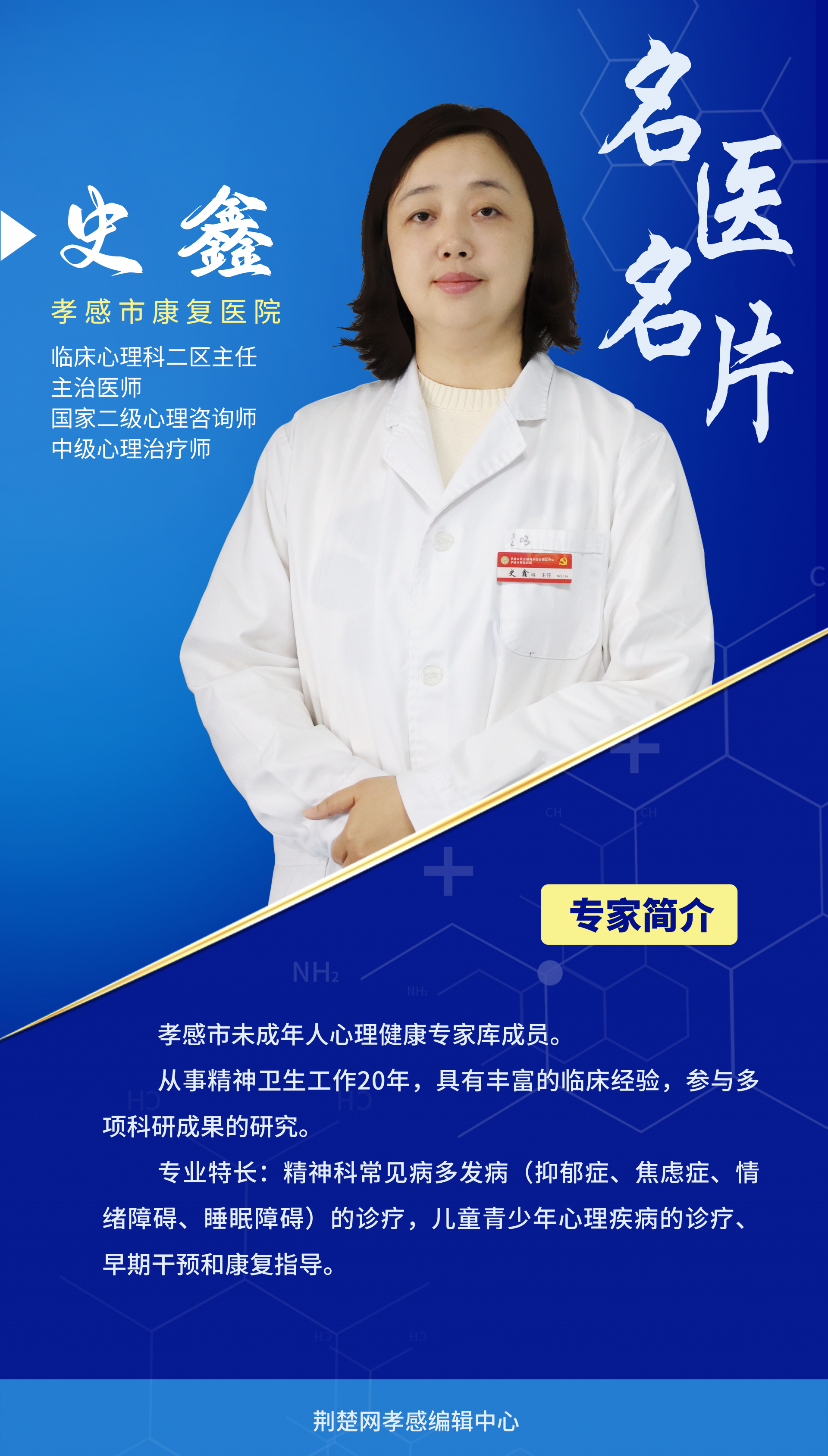 荊楚網(wǎng)(湖北日報網(wǎng))訊(記者葉修頎 通訊員周俊)青少年是一個獨特的群體,在這個發(fā)展階段,孩子身心尚不成熟,容易在學(xué)習(xí)、生活、人際交往、自我意識等方面,遇到各種心理困惑和問題,引發(fā)心理行為問題。共治心理健康問題,共享心理健康成果。我們特別邀請了孝感市康復(fù)醫(yī)院臨床心理科二區(qū)主任、主治醫(yī)師史鑫專家,幫助廣大師生家長解疑答惑。