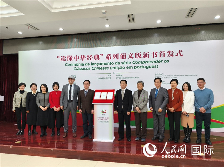 “讀懂中華經(jīng)典”系列葡文版新書首發(fā)式27日在京舉行,圖為與會(huì)嘉賓合影留念。人民網(wǎng)記者 魯揚(yáng)攝