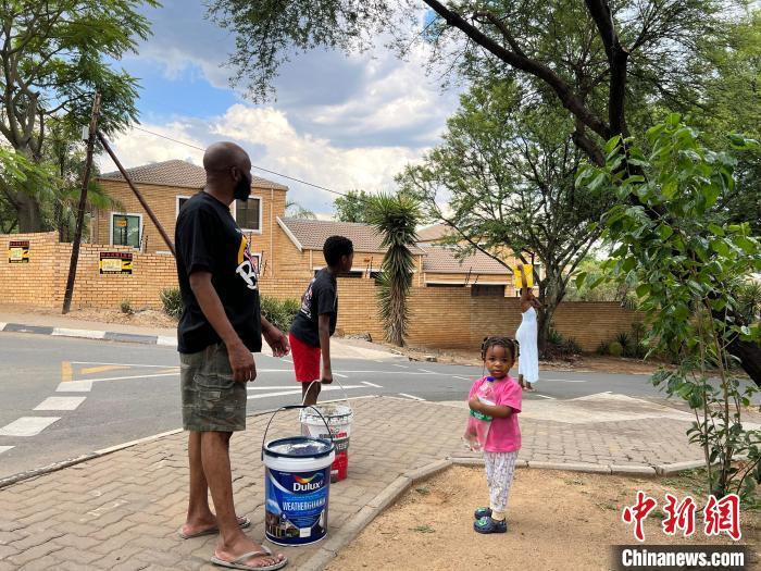 11月17日,南非約翰內(nèi)斯堡居民在免費(fèi)取水點(diǎn)取水。中新社記者 孫翔 攝
