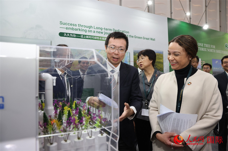 在開館儀式上,COP16中國代表團(tuán)團(tuán)長、國家林業(yè)和草原局局長關(guān)志鷗表示,中國防沙治沙取得舉世矚目的成就,實現(xiàn)了荒漠化和沙化土地面積持續(xù)“雙縮減”,在全球范圍內(nèi)率先實現(xiàn)了土地退化零增長目標(biāo),重點治理區(qū)實現(xiàn)從“沙進(jìn)人退”到“綠進(jìn)沙退”的歷史性轉(zhuǎn)變,荒漠化區(qū)域經(jīng)濟(jì)社會發(fā)展和生態(tài)面貌發(fā)生了翻天覆地的變化。特別是去年6月以來,中國打響“三北”工程攻堅戰(zhàn),目前已經(jīng)完成治沙面積380萬公頃。