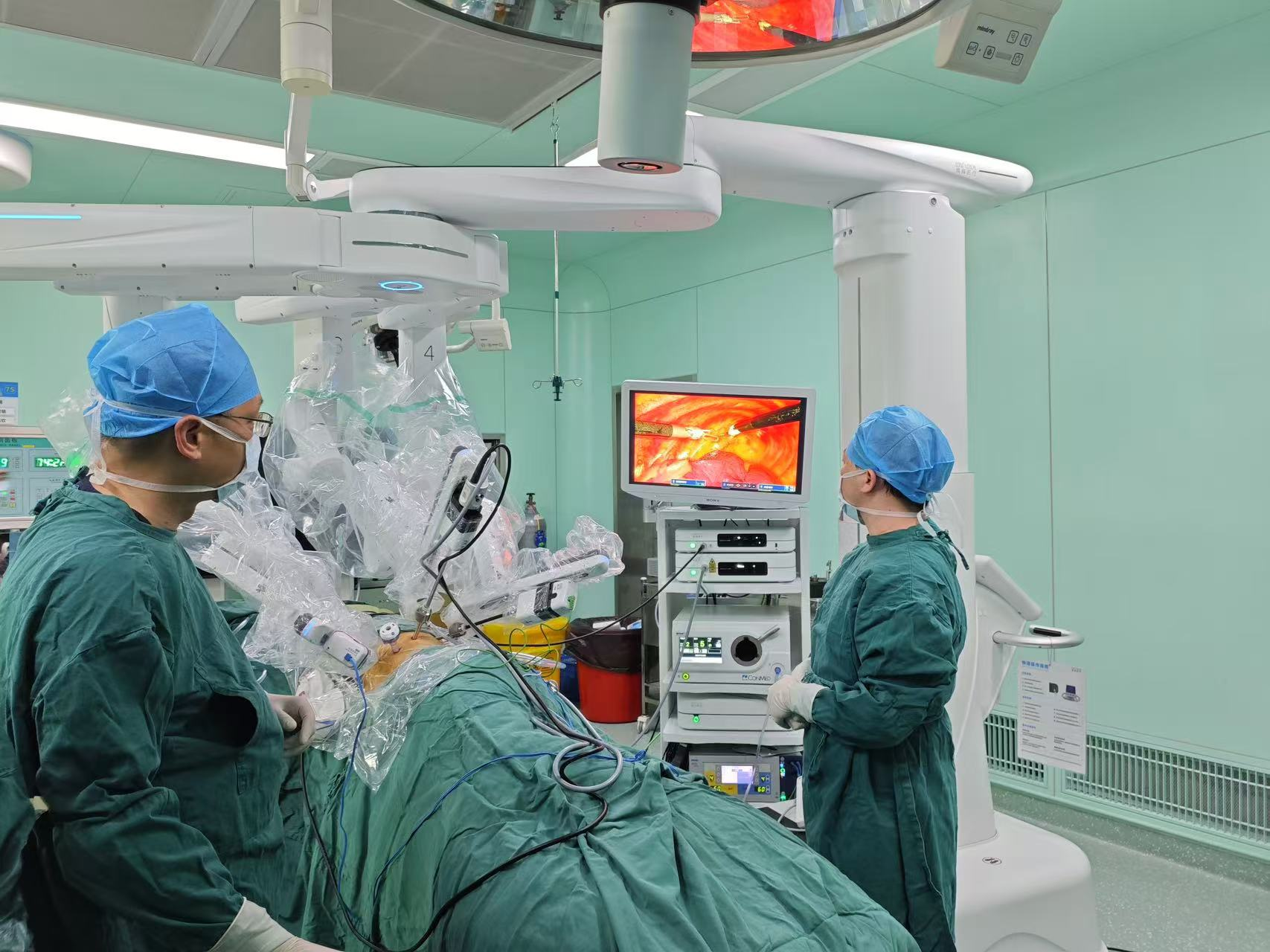 12月1日,在手術(shù)室里,張超斌端坐在機器人手術(shù)系統(tǒng)主操控臺前,嫻熟地操控著達芬奇手術(shù)機器人操作臂,助手醫(yī)師周真在手術(shù)臺上根據(jù)手術(shù)需要更換器械,通過左側(cè)肋間幾個小孔完成左上肺尖后段切除術(shù)。得益于手術(shù)機器人的精準操控和微創(chuàng)特性,整個手術(shù)流暢高效,一氣呵成,彰顯了醫(yī)生醫(yī)術(shù)與機器人在微創(chuàng)手術(shù)中相結(jié)合的卓越效能。
