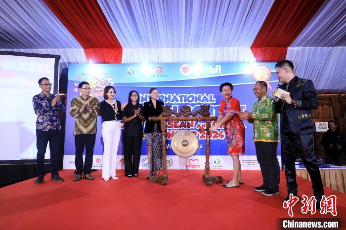 12月5日,2024“東盟-中國(guó)人文交流年”國(guó)際漫畫大賽頒獎(jiǎng)典禮在雅加達(dá)舉行。圖為嘉賓鳴鑼啟動(dòng)。中新社記者 李志全 攝