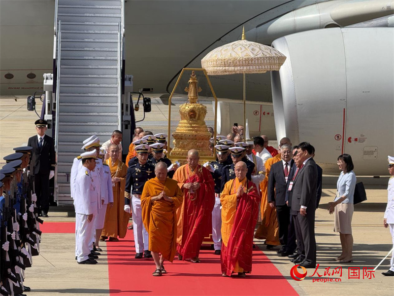 北京靈光寺佛牙舍利抵達泰國曼谷廊曼軍用機場。人民網記者 章念生攝