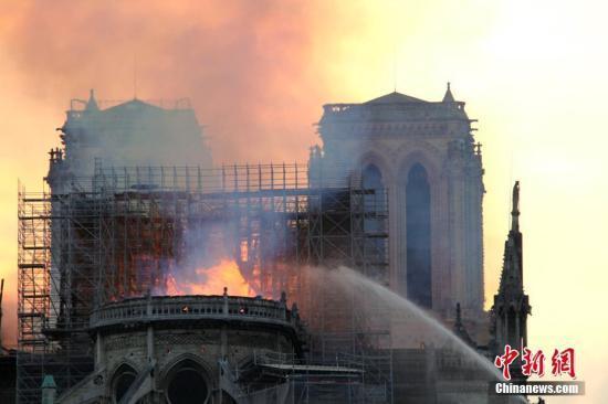 當(dāng)?shù)貢r(shí)間2019年4月15日晚,巴黎圣母院發(fā)生大火,受損嚴(yán)重。大批消防人員在現(xiàn)場進(jìn)行撲救。中新社記者 李洋 攝