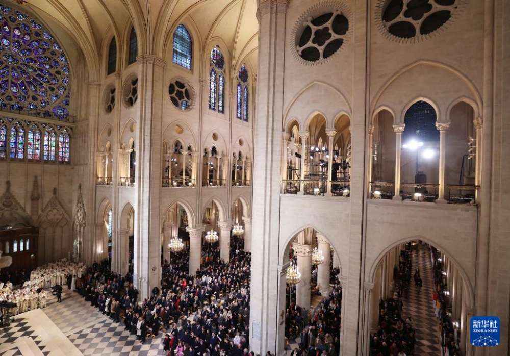 這是12月8日拍攝的巴黎圣母院重新開放儀式現(xiàn)場。