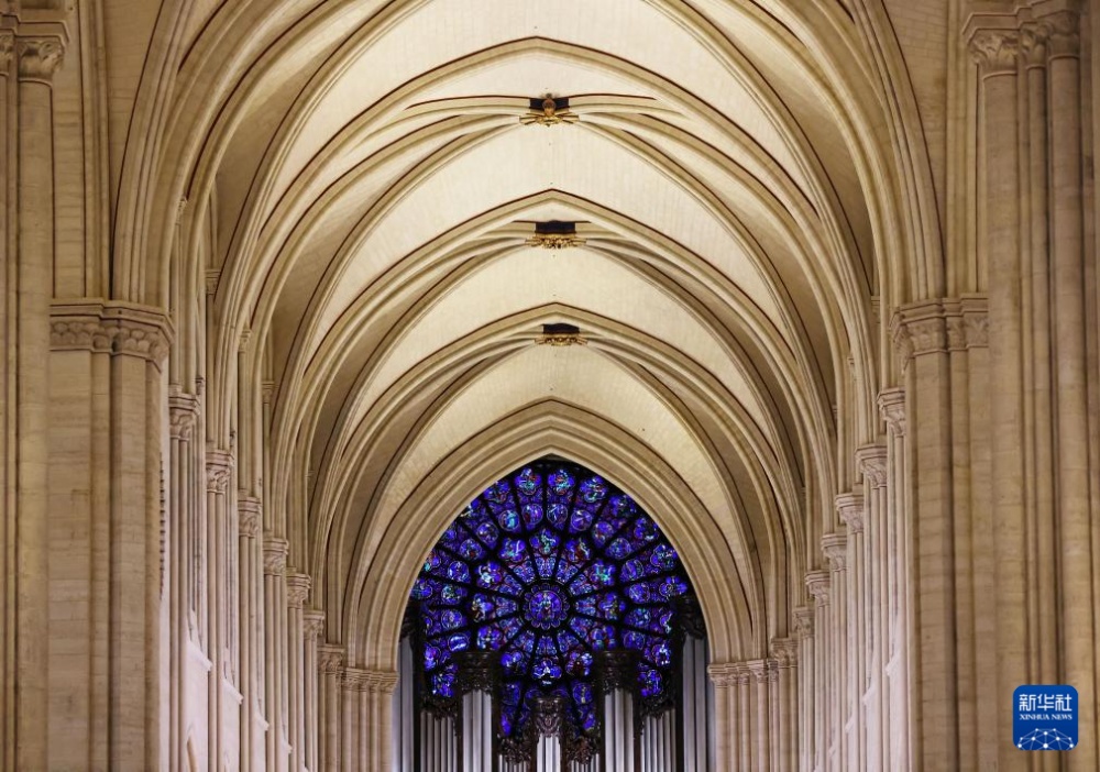 這是12月8日在重新開放儀式上拍攝的巴黎圣母院內(nèi)景。
