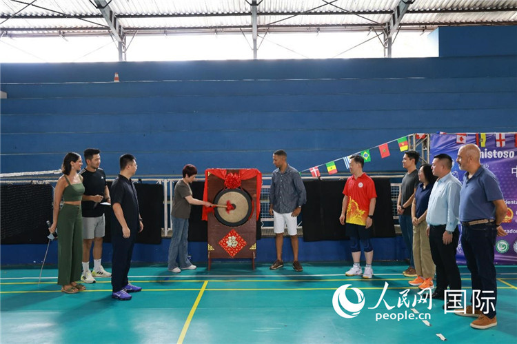 中國駐里約熱內(nèi)盧總領(lǐng)事田敏敲鑼宣布比賽開始。人民網(wǎng)記者 陳海琪攝