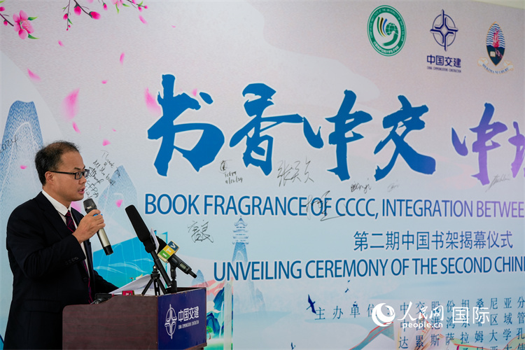 人民網(wǎng)約翰內(nèi)斯堡12月16日電 (記者戴楷然、于梓璇)達累斯薩拉姆消息:第二期“中國書架”揭幕儀式日前在坦桑尼亞達累斯薩拉姆大學(xué)圖書館舉行。本次活動以“書香中交,中坦共融”為主題,由中國交建坦桑尼亞分公司主辦。中國駐坦桑尼亞大使館經(jīng)商參贊褚昆、達累斯薩拉姆大學(xué)圖書館代理館長科林·基馬約、達累斯薩拉姆大學(xué)孔子學(xué)院中方院長張笑貞、坦方院長阿爾丁·穆特貝、達累斯薩拉姆大學(xué)國際學(xué)院代表、中坦友好協(xié)會代表、中國港灣代表以及分公司相關(guān)負責(zé)人參加活動。