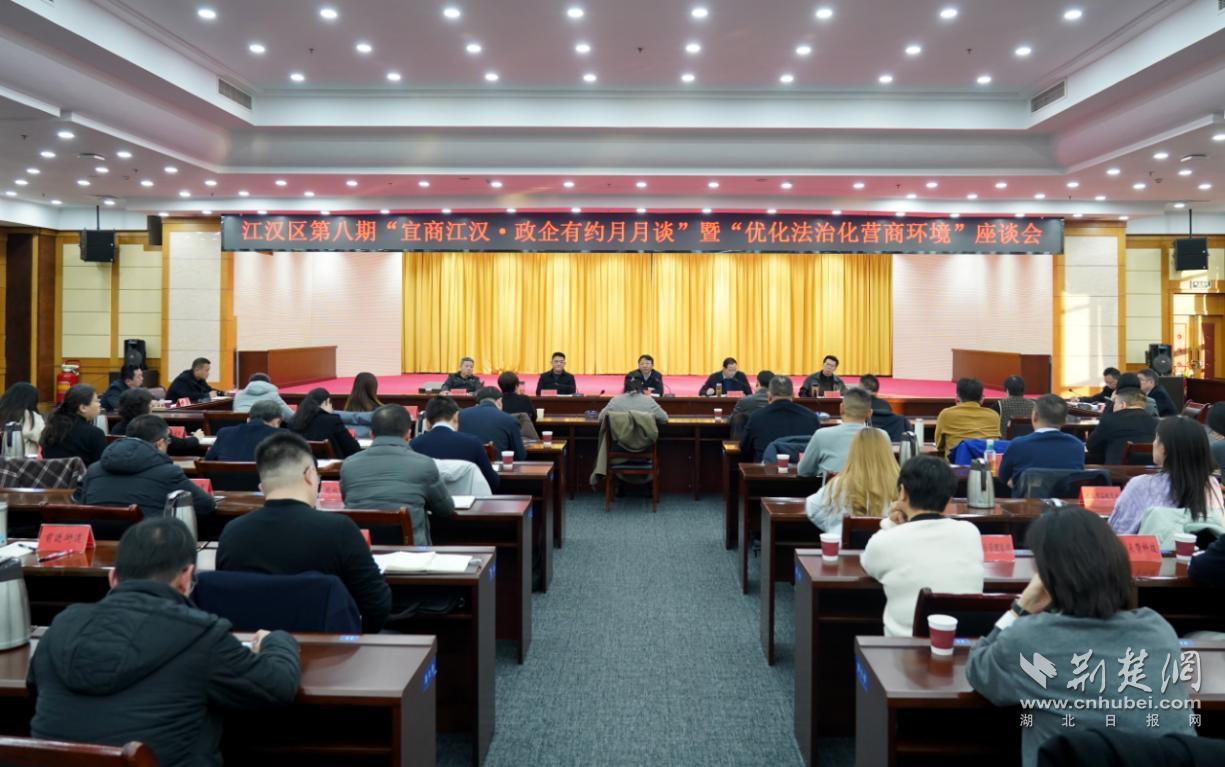 荊楚網(wǎng)(湖北日報(bào)網(wǎng))訊(記者 何婧 通訊員 蔡宇欣)12月17日,江漢區(qū)舉辦第八期“宜商江漢·政企有約月月談”暨“優(yōu)化法治化營商環(huán)境”座談會。區(qū)直部門、各街道主要負(fù)責(zé)人及商協(xié)會、民營企業(yè)代表等共同參與。