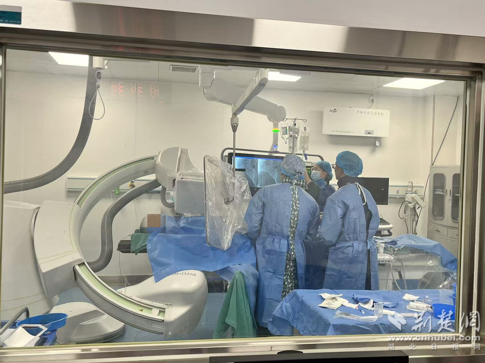 9點(diǎn)24分,急診心電圖結(jié)果顯示程先生患有急性下壁右室心肌梗死,盡管心肌酶譜檢查結(jié)果尚未顯示異常,但心病科主任葉天波通過(guò)遠(yuǎn)程會(huì)診系統(tǒng)與孝感市心血管知名專(zhuān)家何榮華取得聯(lián)系,共同評(píng)估病情?;趦晌粚?zhuān)家的意見(jiàn),決定立即為程先生實(shí)施手術(shù),以盡快恢復(fù)心臟血液供應(yīng)。