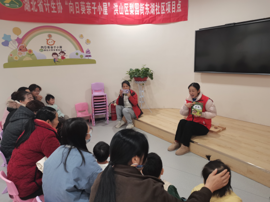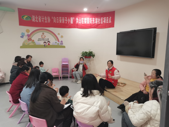 12月26日上午9點(diǎn),湖北省計(jì)劃生育協(xié)會(huì)洪山區(qū)梨園街東湖社區(qū)向日葵親子小屋項(xiàng)目點(diǎn)的親子早教課程如期開展。