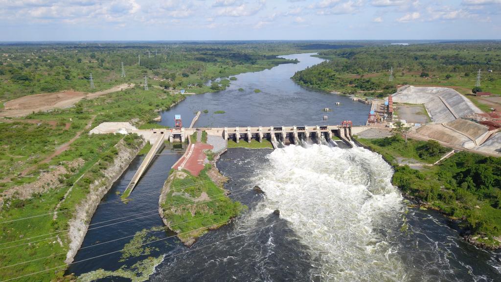 這是位于白尼羅河上的烏干達(dá)卡魯瑪水電站航拍畫面(2023年12月14日拍攝)。新華社發(fā)(王劍攝)