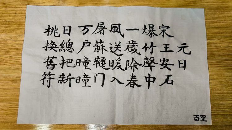 卡洛斯在首都師范大學(xué)的書法習(xí)作,右下角是他的中文名:百里(受訪者供圖)