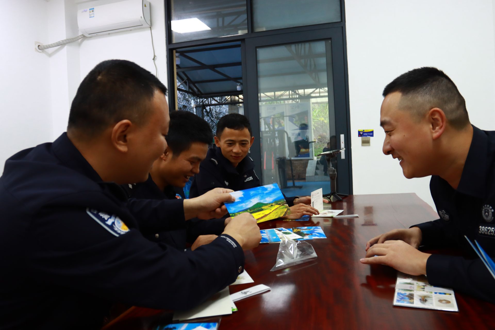 “國門衛(wèi)士們常年戍守在邊境一線,我們的萬家燈火,離不開他們辛苦的付出,”天門市郵政分公司總經(jīng)理陳剛介紹,“在第五個(gè)中國人民警察節(jié)到來之際,我們?yōu)檑驴党鋈刖尺叿罊z查站的12名湖北籍移民管理警察送去了“家鄉(xiāng)禮”。禮物都是經(jīng)過精心挑選的,包括湖北特色美食禮盒、天門風(fēng)光明信片,以及春蕾幼兒園小朋友的繪畫、手工作品,傳遞天門人民對國門衛(wèi)士的敬仰與祝福?!?/p>