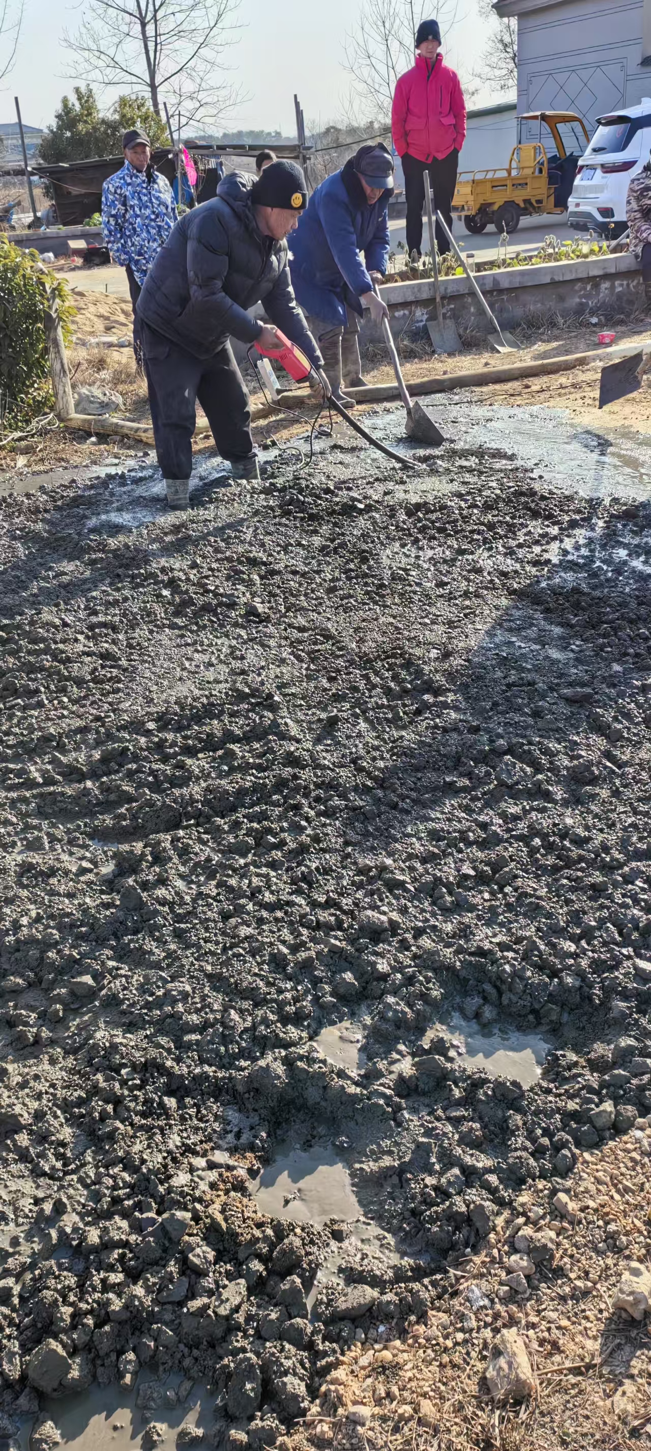 1月13日至14日,在宏陽水泥的大力支持下,城南村的道路硬化工程熱火朝天地展開了。令人感動的是,村民們紛紛自發(fā)組織起來,投身到這場“家門口的建設”中。大家分工明確,有的擼起袖子搬運水泥,有的熟練地攪拌混凝土,還有的專注地鋪設路面?,F(xiàn)場一片忙碌,每個人都干勁十足。在大家齊心協(xié)力的努力下,原本破舊的道路,很快就變成了寬闊平整的水泥路。